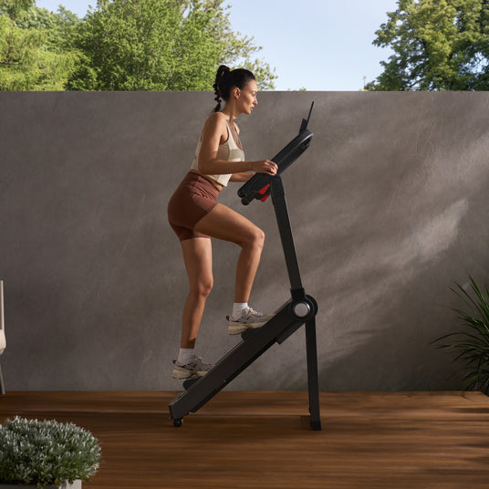 Stair Climber Tech-Fold har 3 ulike stigningsnivåer – 33°, 37° og 40° – som du enkelt kan justere basert på om du ønsker å gå i mindre eller større motbakker.